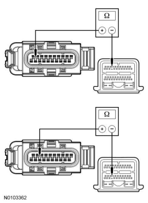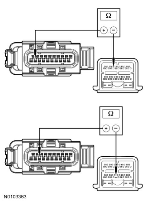 - For vehicles equipped with a 3.5L GTDI engine, measure the resistance between PCM transaxle C1381T-19, circuit VET27 (BN/YE) and transaxle vehicle harness C168-2, circuit VET27 (BN/YE). Measure the resistance between PCM transaxle C1381T-41, circuit RE406 (GY/VT) and transaxle vehicle harness C168-3, circuit RE406 (GY/VT).