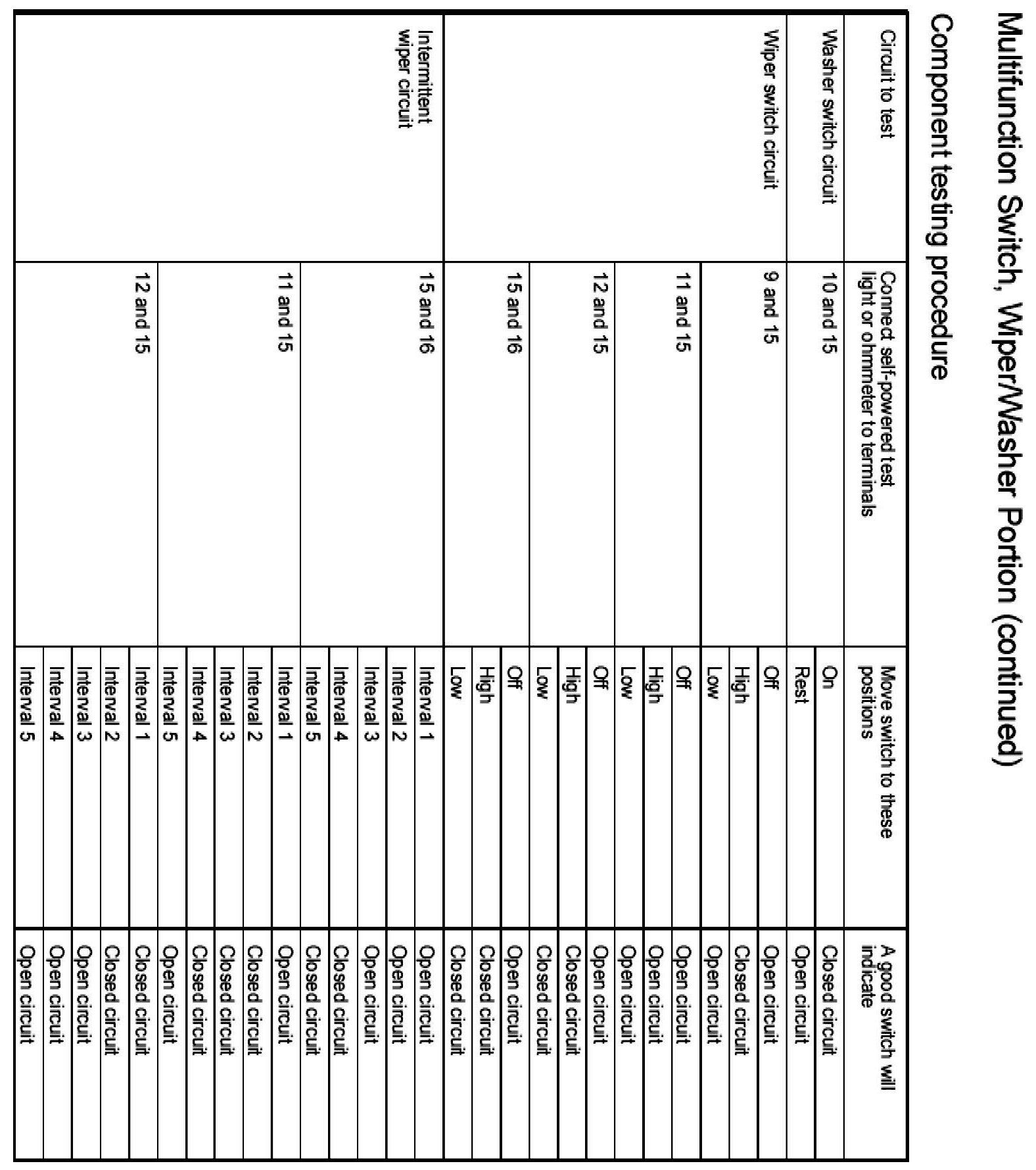 Windshield Washer Switch: Testing and Inspection