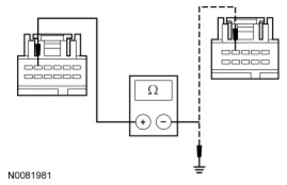 - Measure the resistance between the FDIM C2123-5, circuit CMN23 (WH/BU), harness side and the ACM C2253b-4, circuit CMN23 (WH/BU), harness side; and between the FDIM C2123-5, circuit CMN23 (WH/BU), harness side and ground.