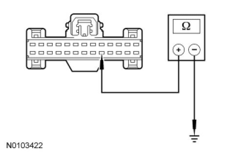 - Measure the resistance between IC C220-18, circuit CCA15 (YE/GY), harness side and ground.