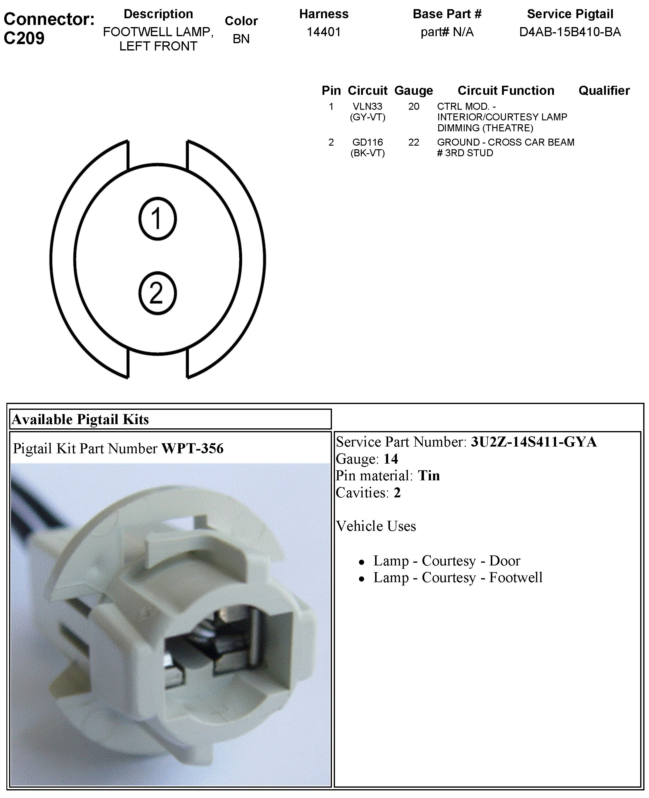 C209 Footwell Lamp, Left Front