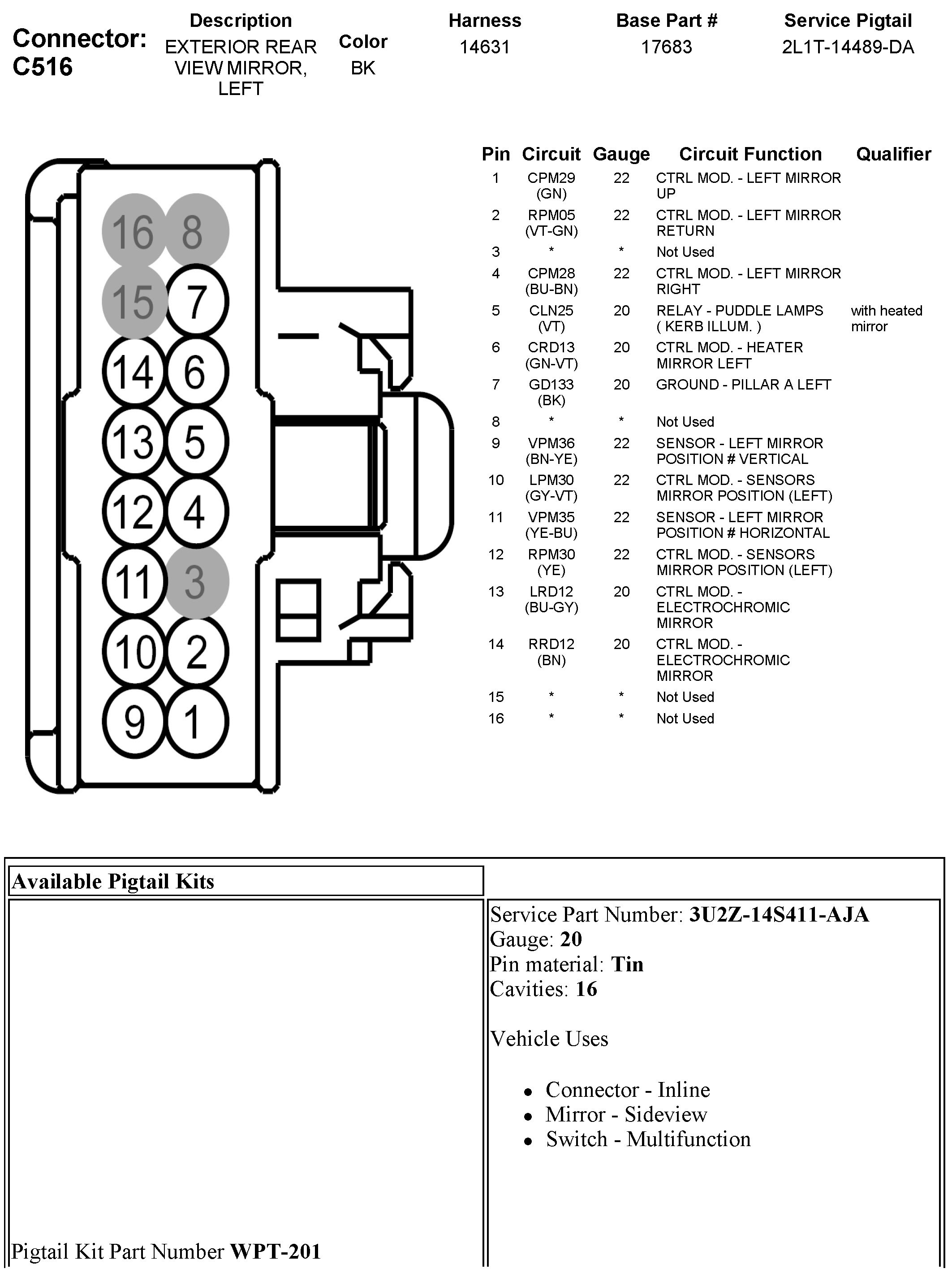 C516 Exterior Rear View Mirror, Left