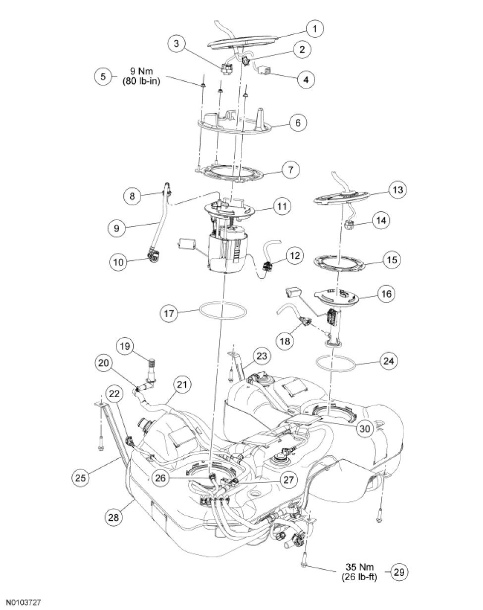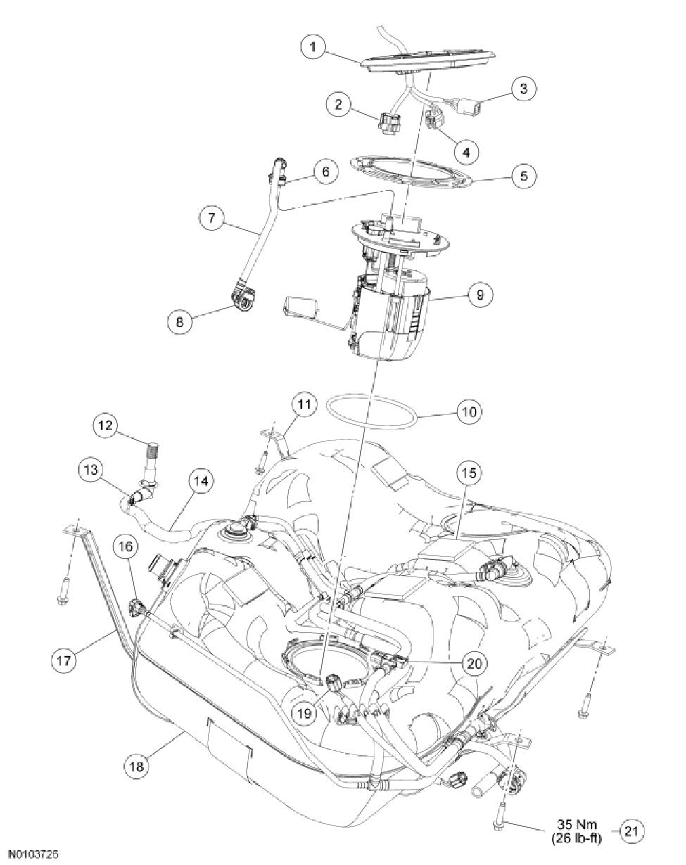 Fuel Tank and Filler Pipe - Exploded View