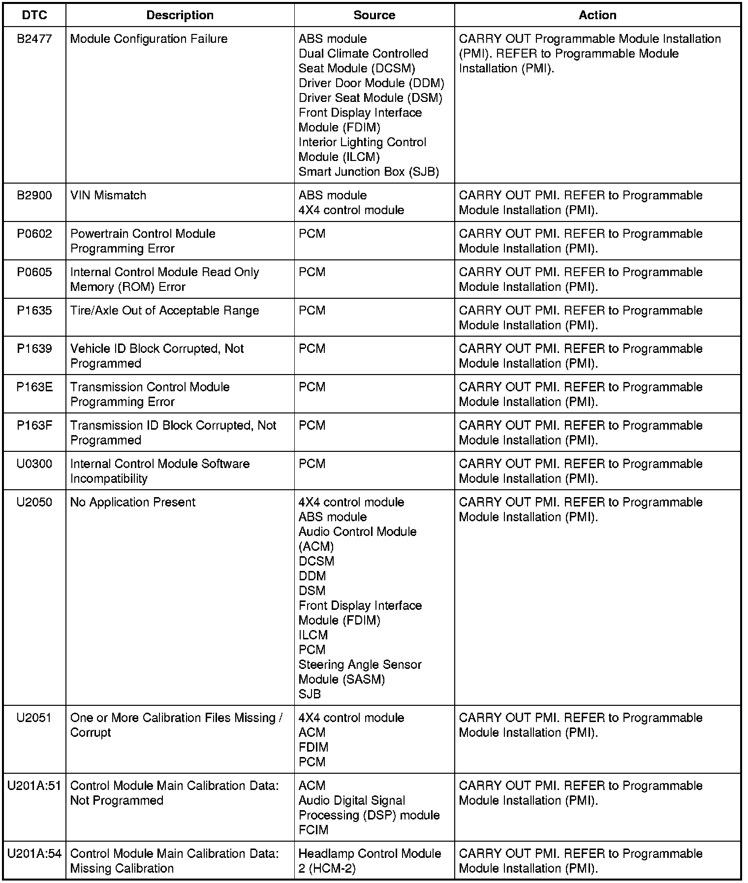 NOTE: Some modules on this vehicle utilize a 5-character DTC followed by a 2-character failure-type code. The failure-type code provides information about specific fault conditions such as opens, or shorts to ground. Continuous Memory DTCs have an additional 2-character DTC status code suffix to assist in determining DTC history.