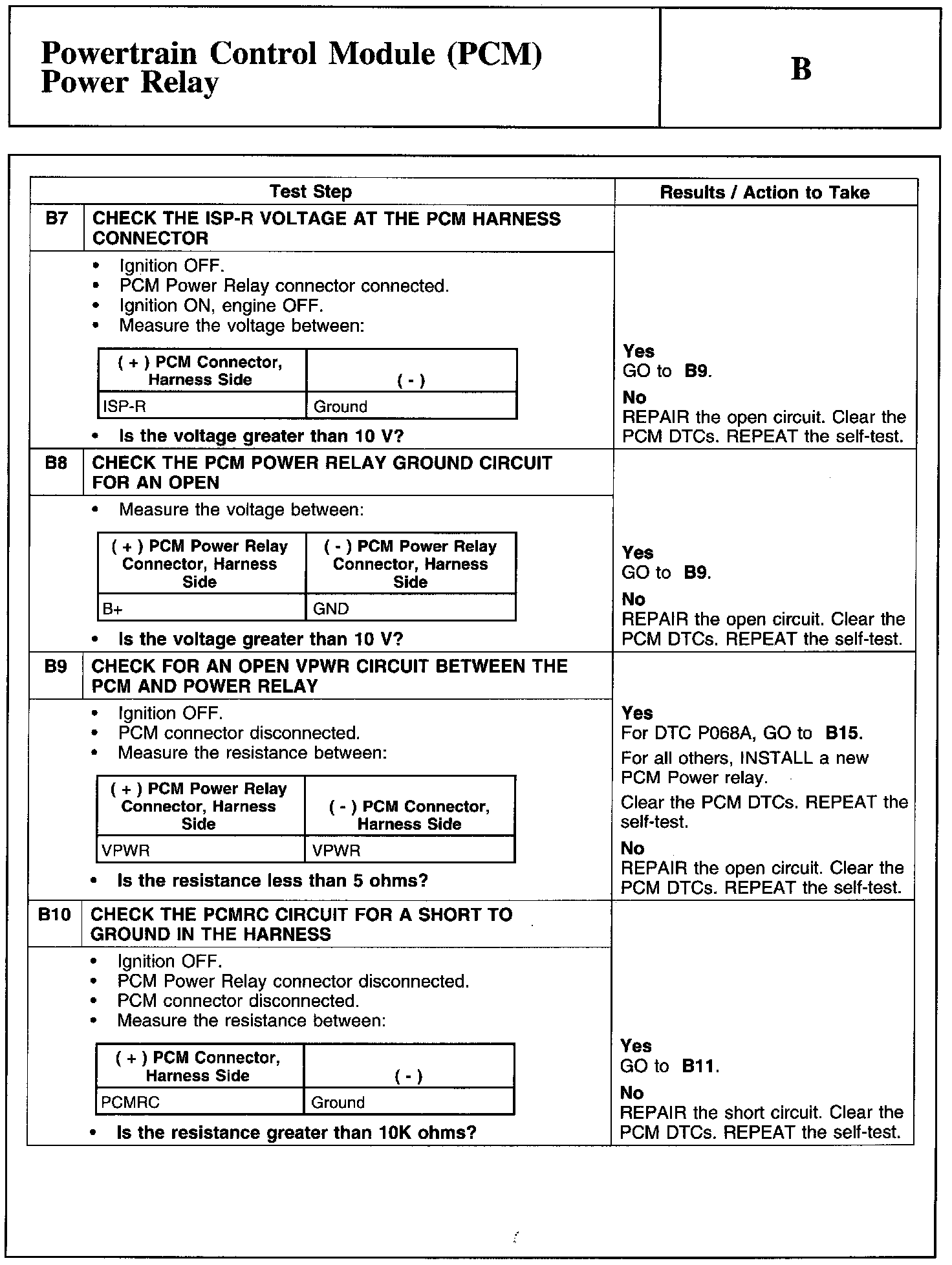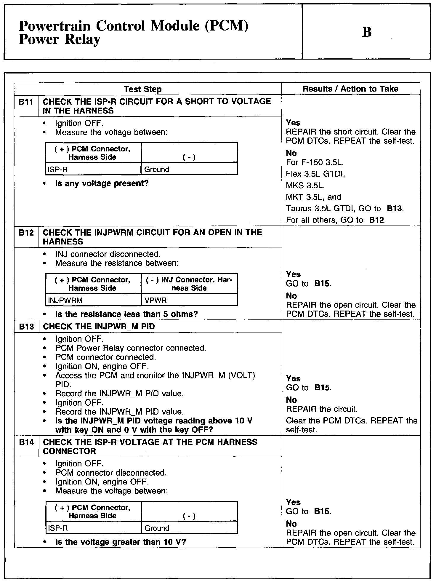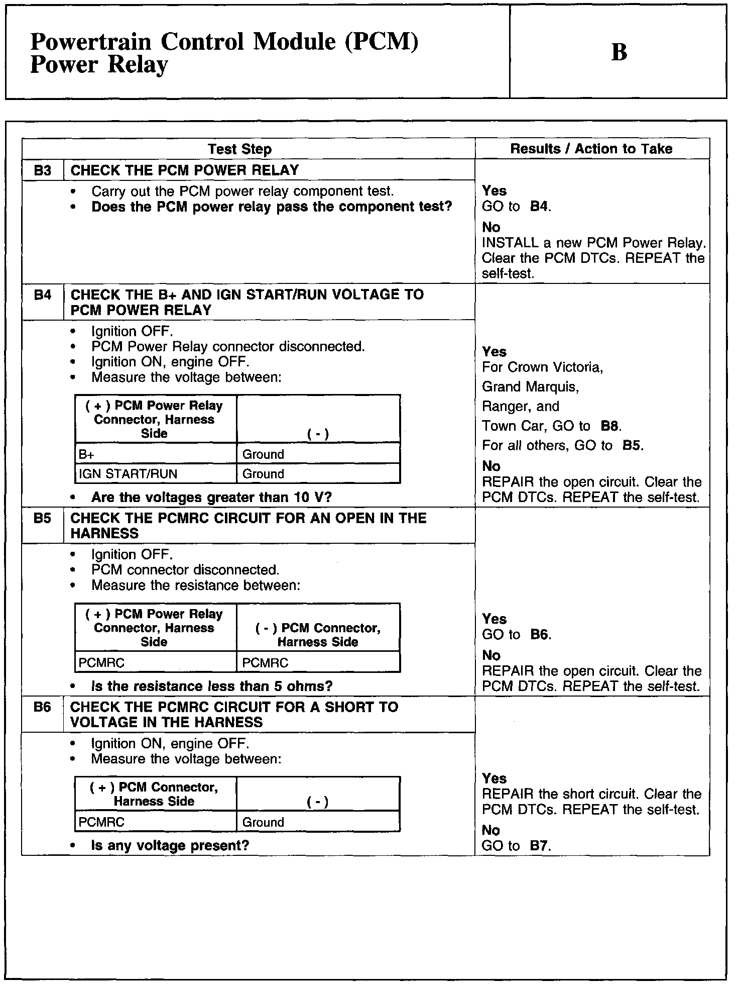 Test B: Powertrain Control Module (PCM) Power Relay