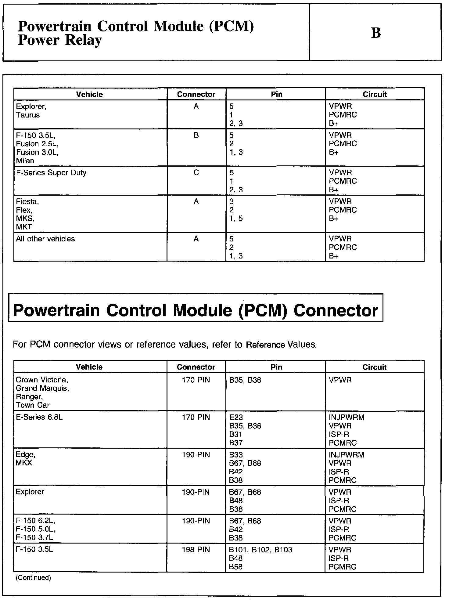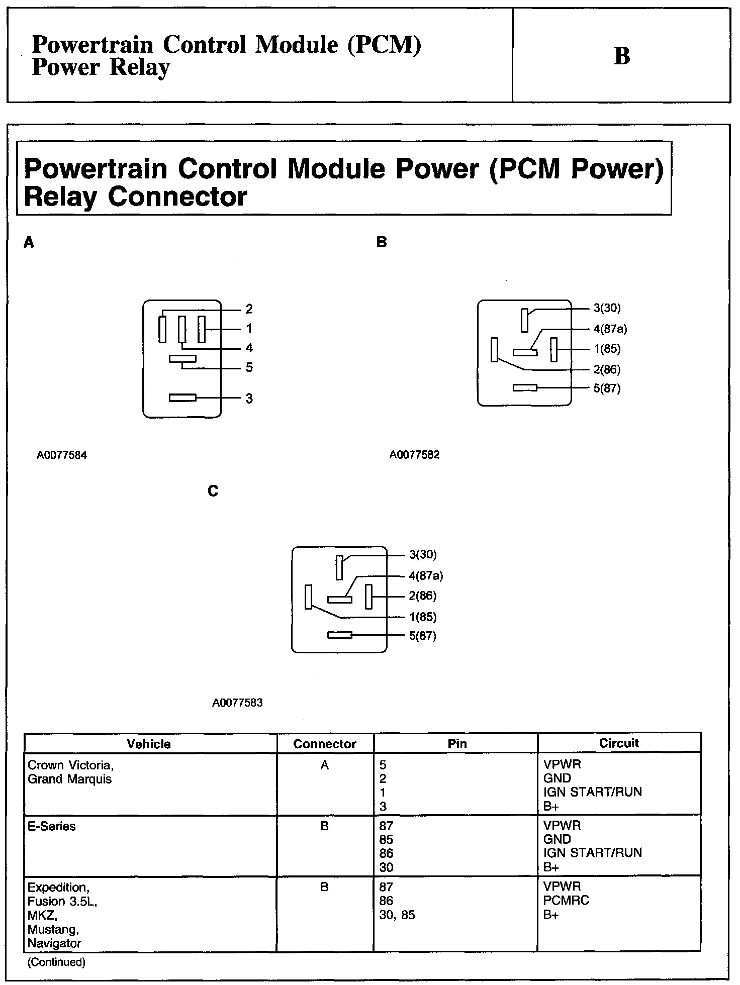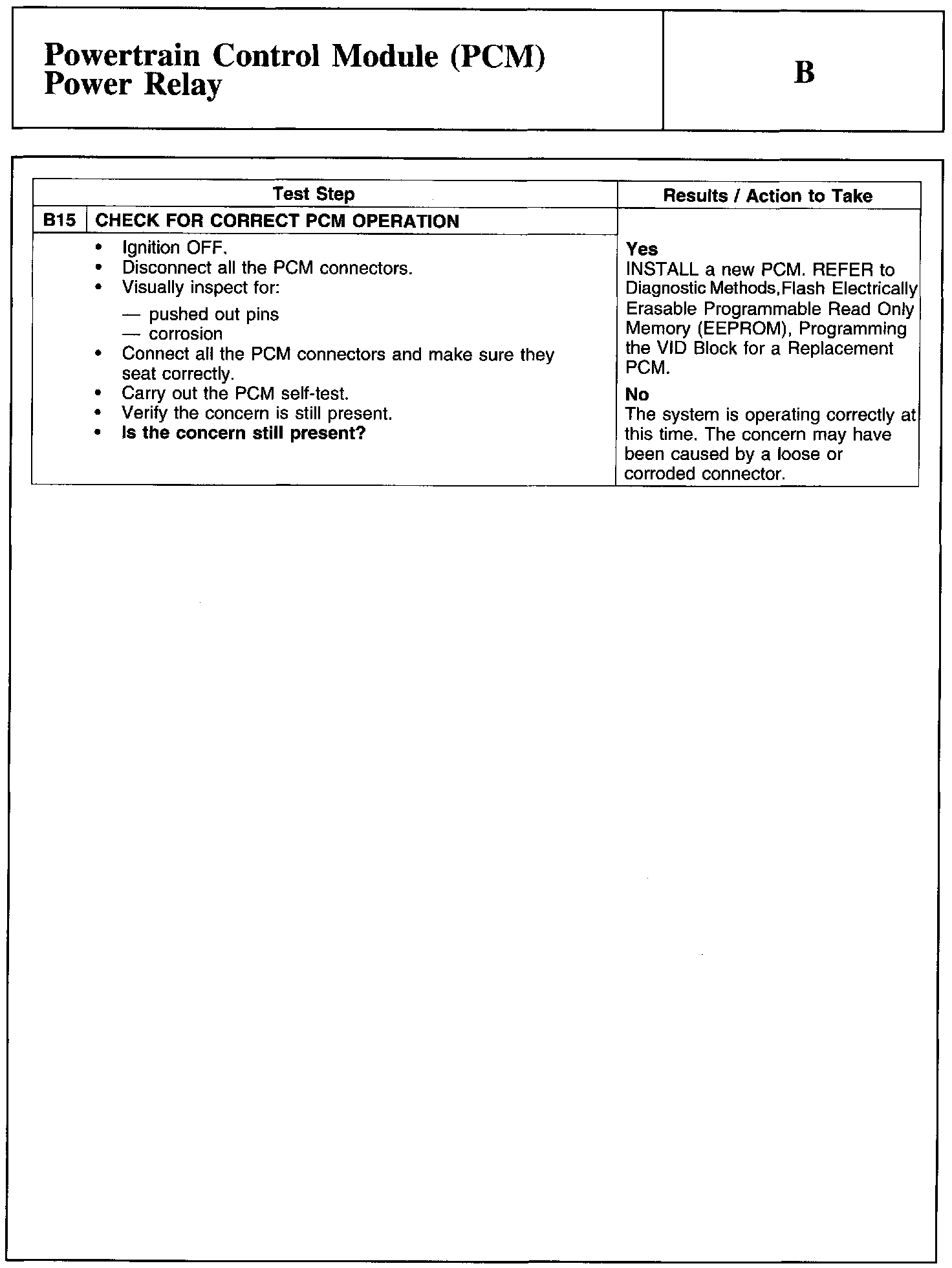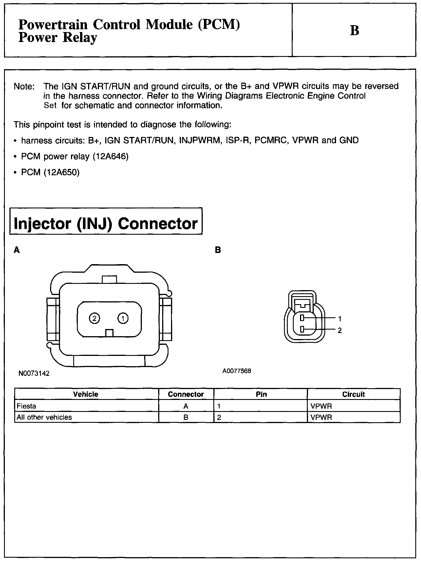 Test B: Powertrain Control Module (PCM) Power Relay