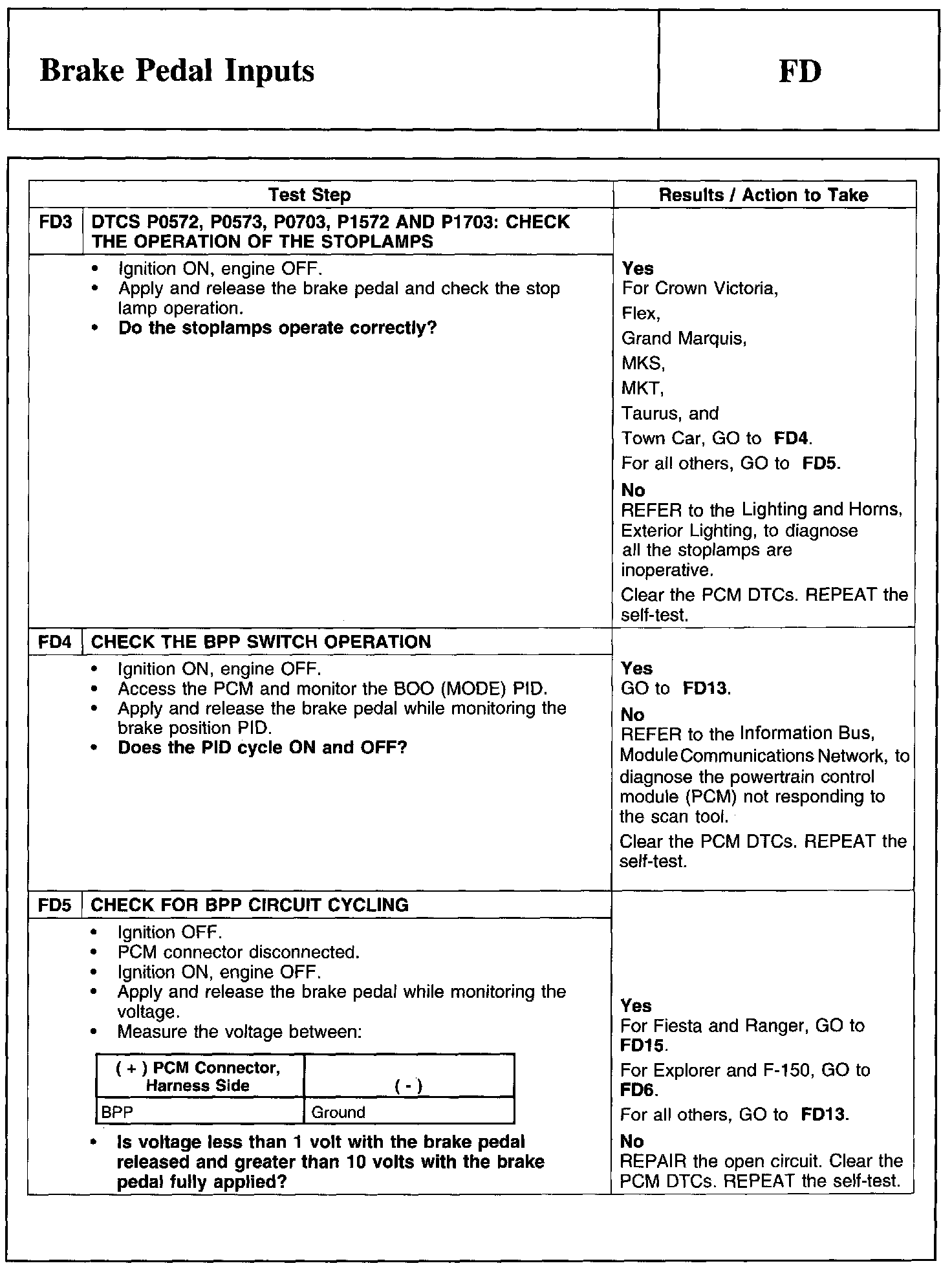PINPOINT TEST FD: BRAKE PEDAL INPUTS