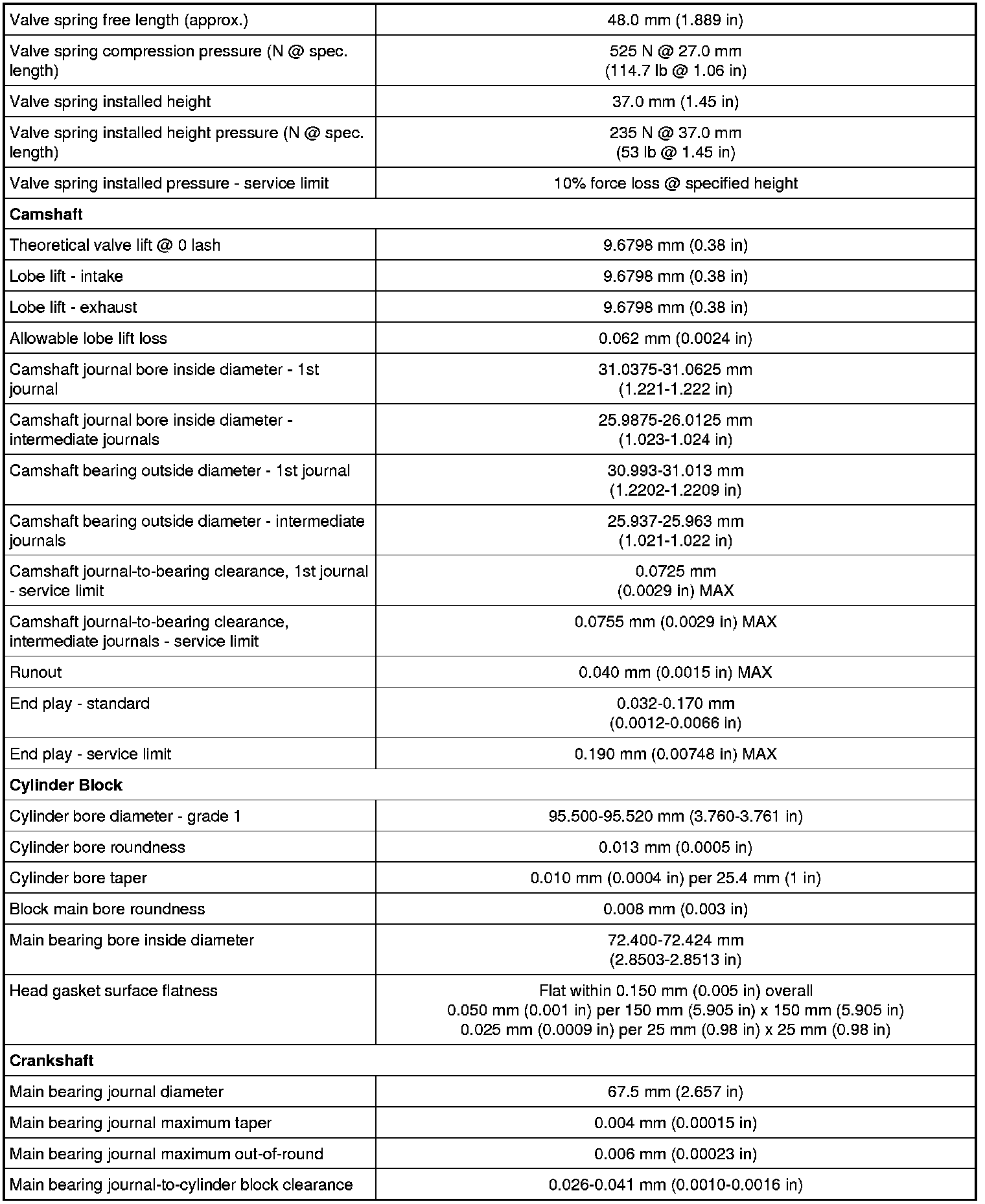 Camshaft Gear/Sprocket Specifications
