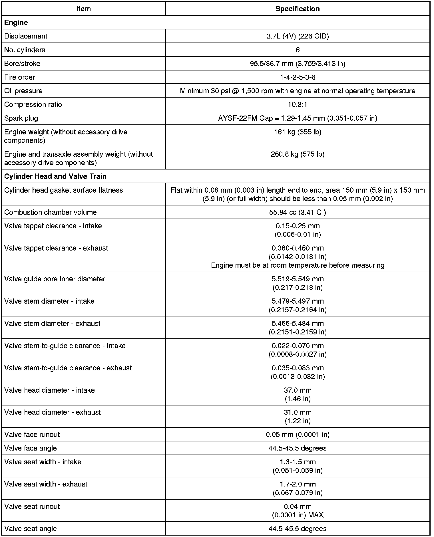 Intake Manifold Specifications
