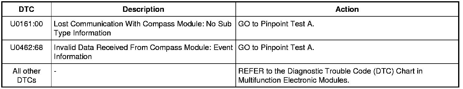 NOTE: This module utilizes a 5-character DTC followed by a 2-character failure-type code. The failure-type code provides information about specific fault conditions such as opens, or shorts to ground. Continuous memory DTCs have an additional 2-character DTC status code suffix to assist in determining DTC history.