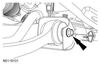 - Loosely install a new rear lower arm-to-subframe bolt.