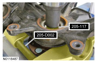 18. NOTICE: Do not tighten the halfshaft nut with the vehicle on the ground. The nuts must be tightened to specification before the vehicle Is lowered onto the wheels. Wheel bearing damage will occur If the wheel bearing Is loaded with the weight of the vehicle applied.