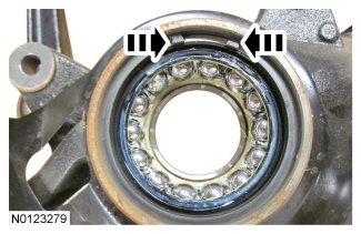 28. NOTE: This step may not be necessary if the inner wheel bearing race remains on the wheel bearing after removing the wheel hub.