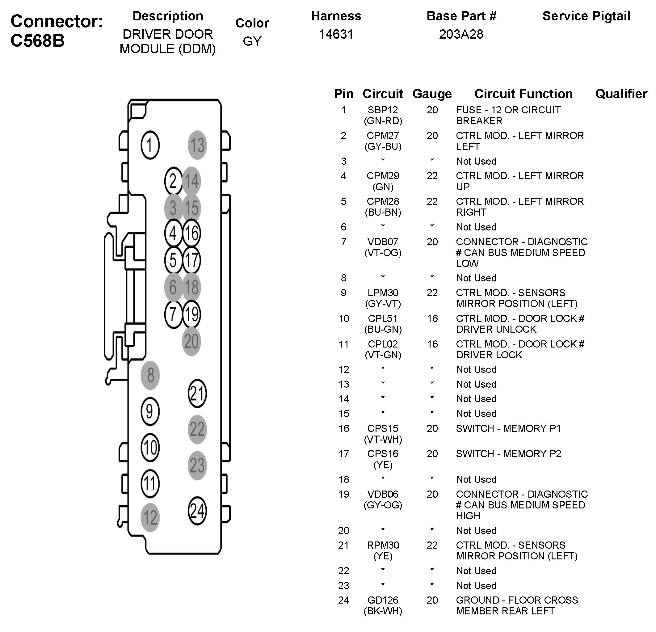 C568B Driver Door Module (DDM)