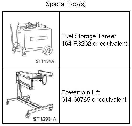 1. With the vehicle in NEUTRAL, position it on a hoist. For additional information, refer to Jacking and Lifting Service and Repair.