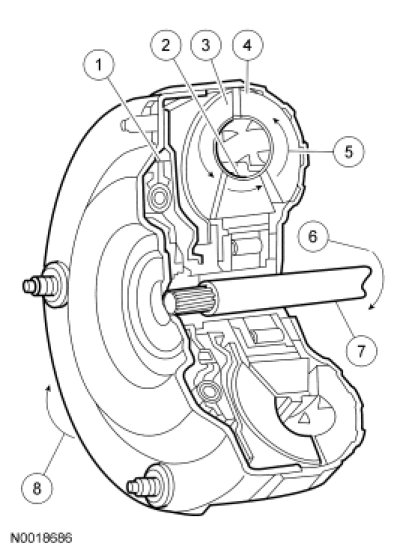 - Rotation of the converter housing and impeller sets the transmission fluid in motion.