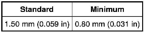 Using a feeler gauge, while applying pressure and rotating the synchronizer ring, measure the clearance between the 6th gear synchronizer ring and the flank surface of the gear. The measurement should be the same around the entire circumference. Replace the synchronizer ring if less than the minimum specification.