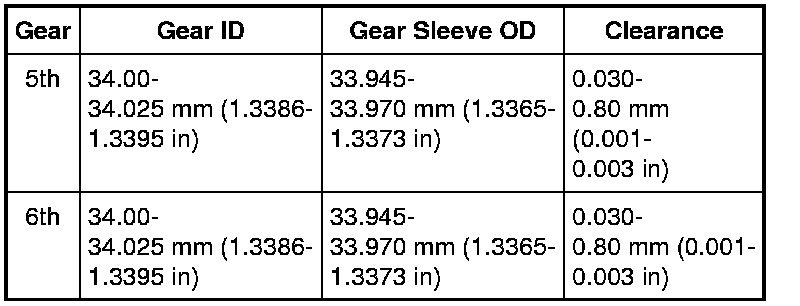 7. Using a telescoping gauge, measure the ID of the 6th gear. Using a micrometer, measure the OD of the gear sleeve.