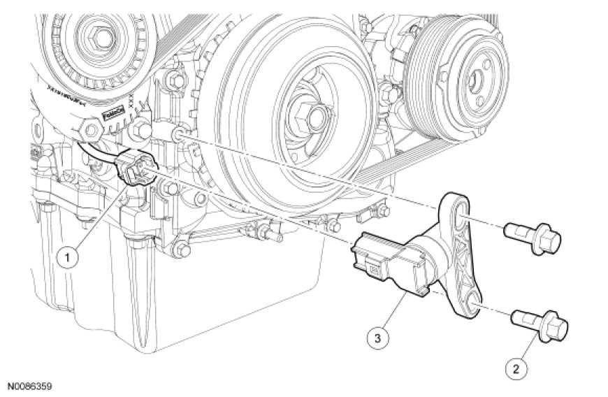 - Tighten the 2 CKP bolts to 7 Nm (62 lb-in).
