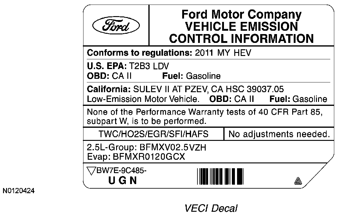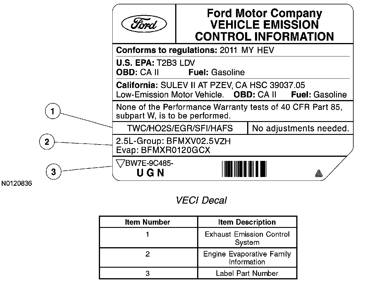 VEHICLE EMISSION CONTROL INFORMATION (VECI)VECI Decal