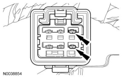 - If equipped with a power seat track, apply power and ground to the pins shown.