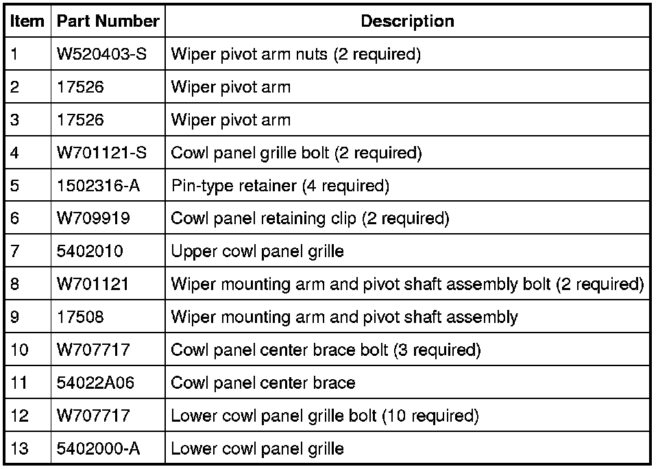 14. Remove the 10 lower cowl panel grille bolts.