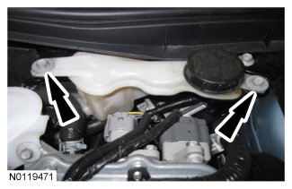 11. Remove the 2 brake fluid reservoir bolts and position the brake fluid reservoir aside.