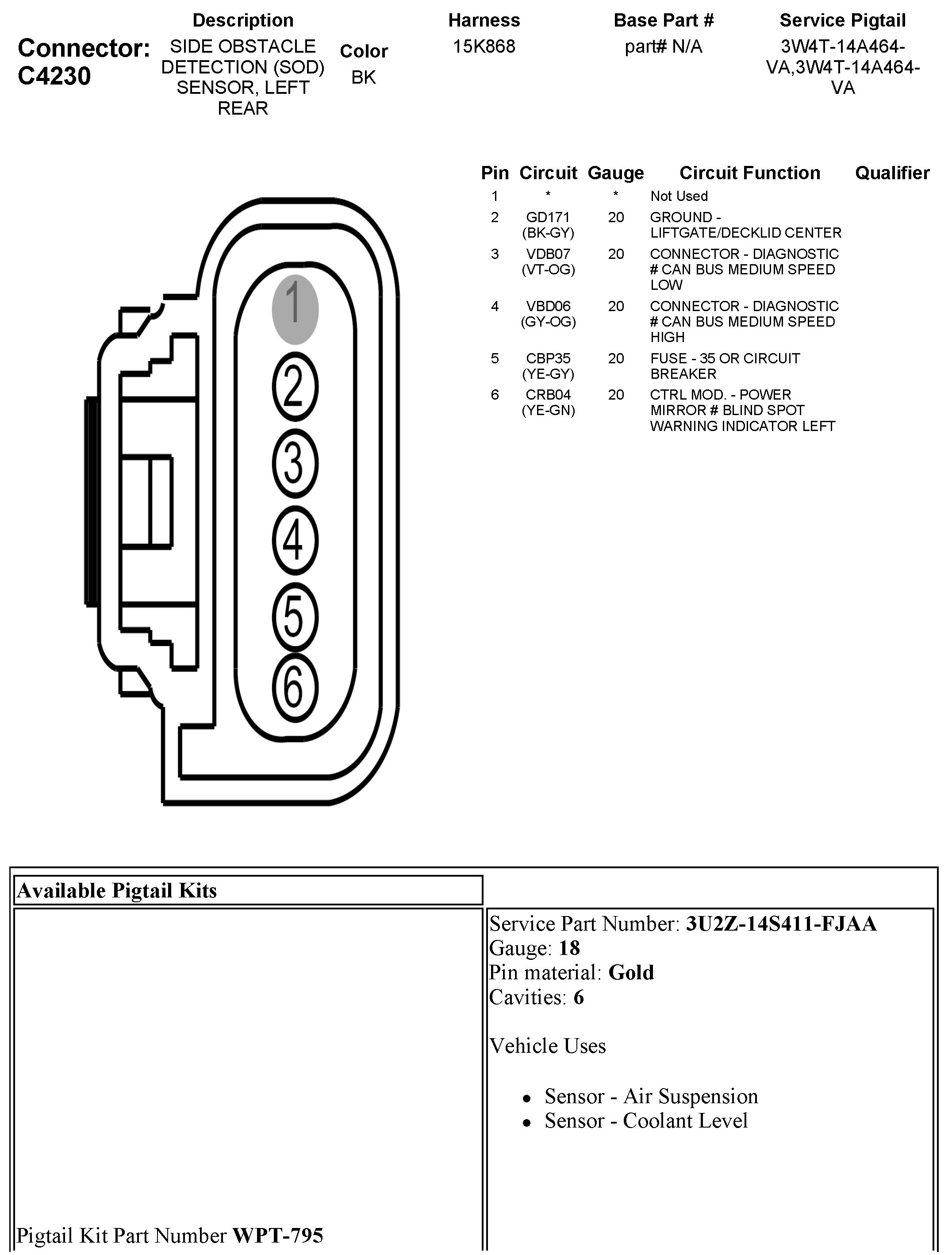 C4230 Side Obstacle Detection (SOD) Sensor, Left Rear