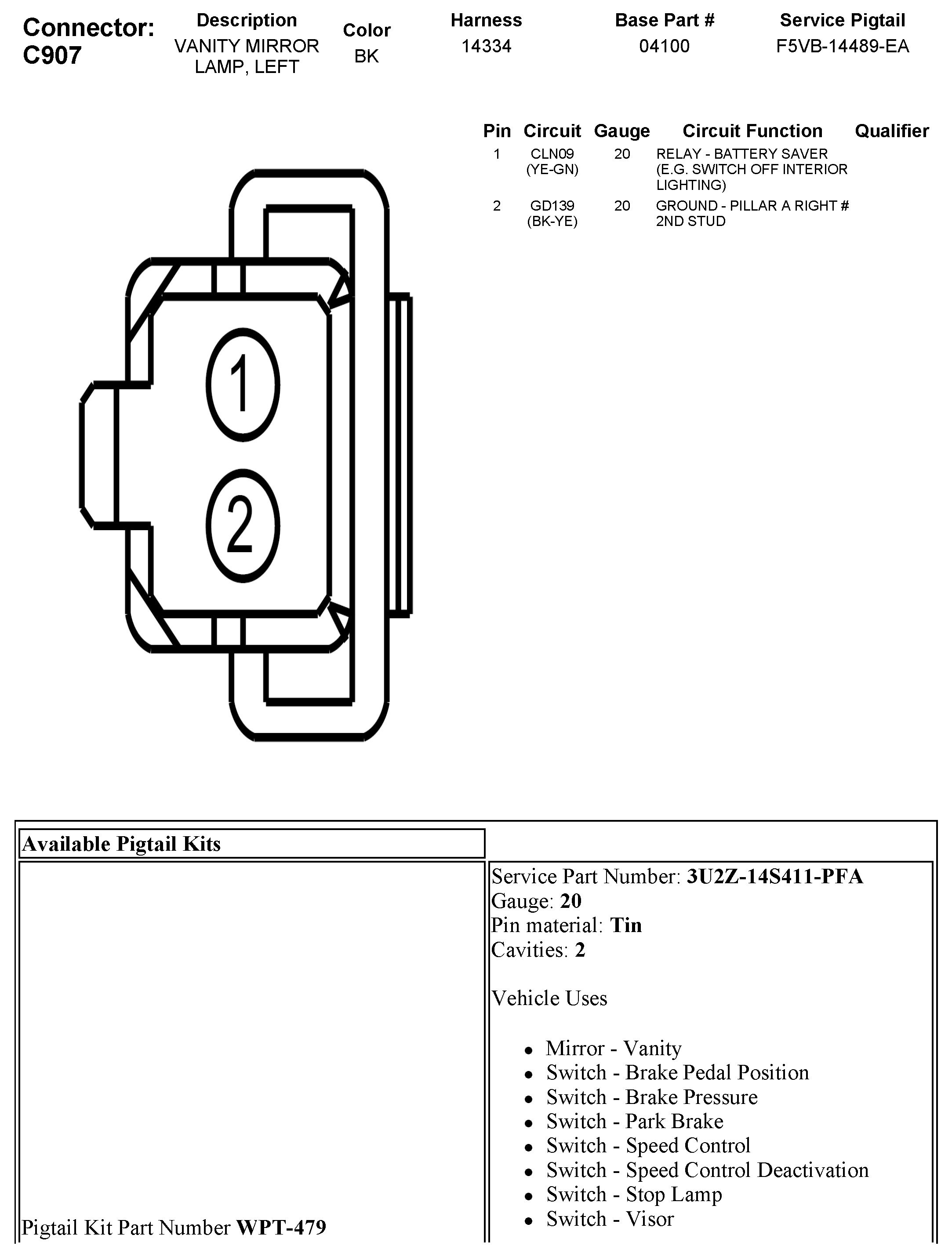 C907 Vanity Mirror Lamp, Left