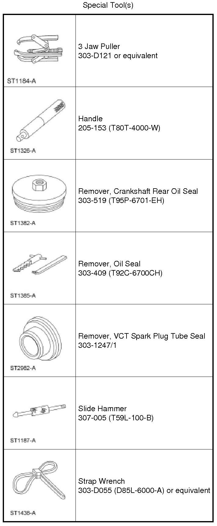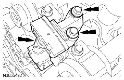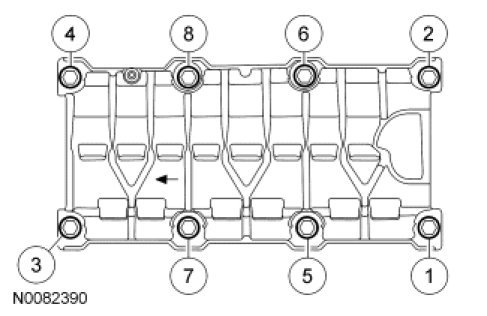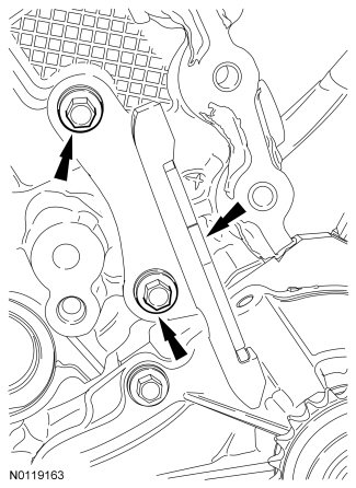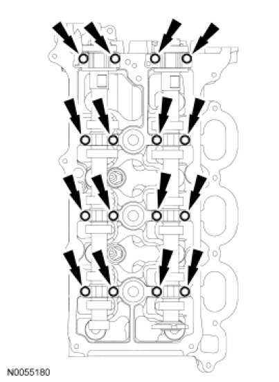 100. NOTE: The VCT bolt and the exhaust camshaft bolt must be discarded and new ones installed. However, the exhaust camshaft washer is reusable.