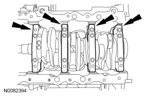NOTE: Clearly mark the position and orientation of the main bearing caps for reassembly.