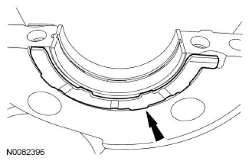 1. Alternately tighten the 2 bolts one turn at a time until the crankshaft rear seal retainer-to-cylinder block seal is released.