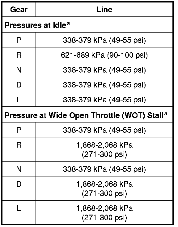 Line Pressure Chart
