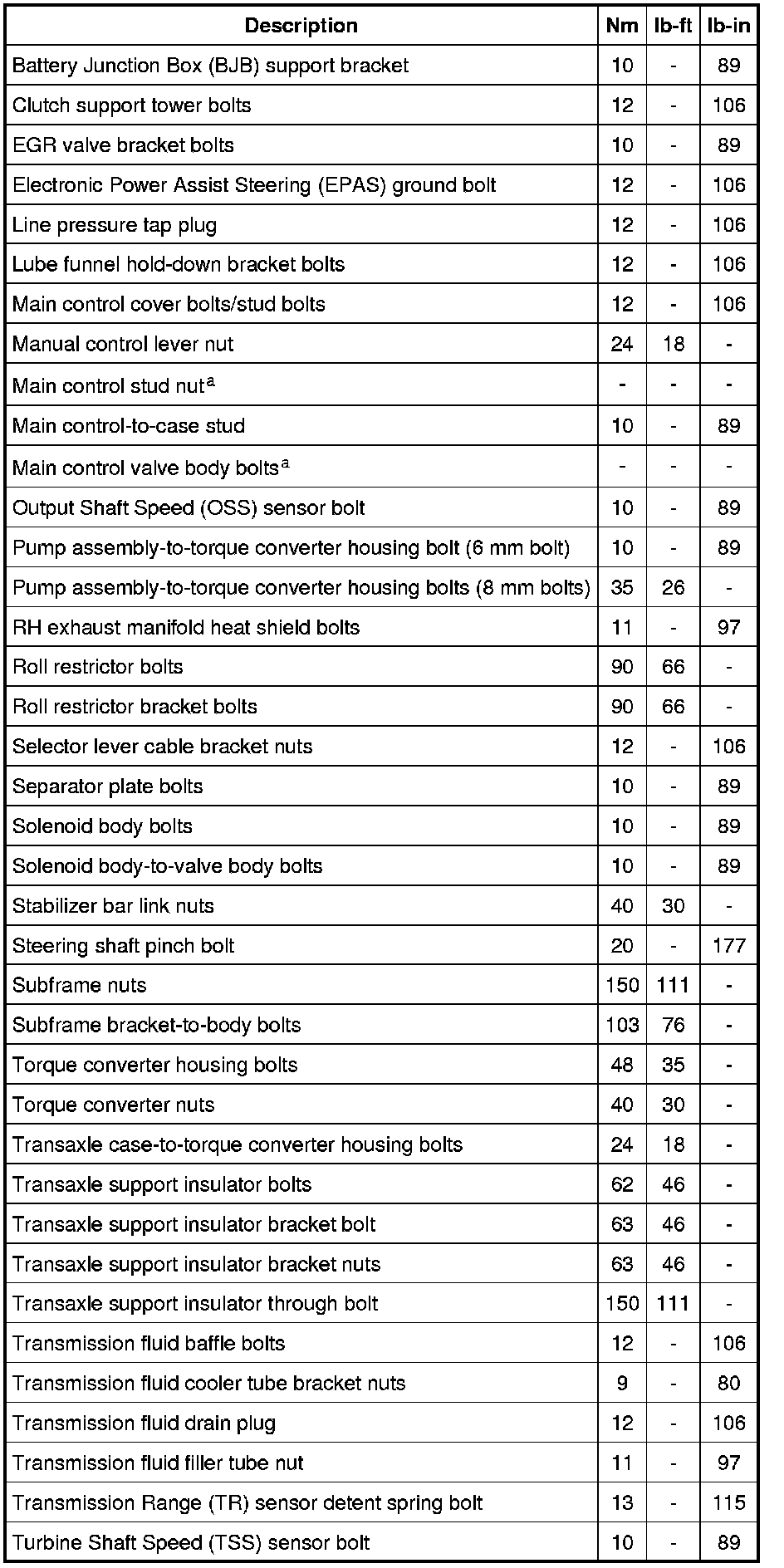 Torque Specifications