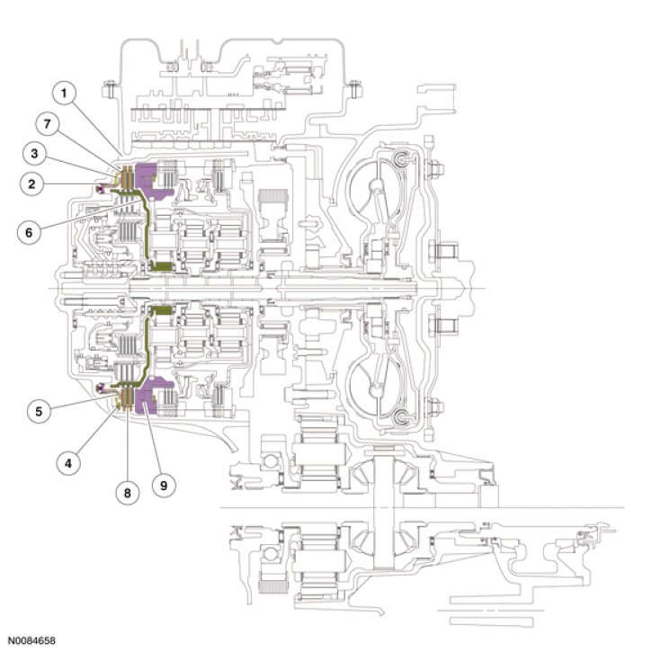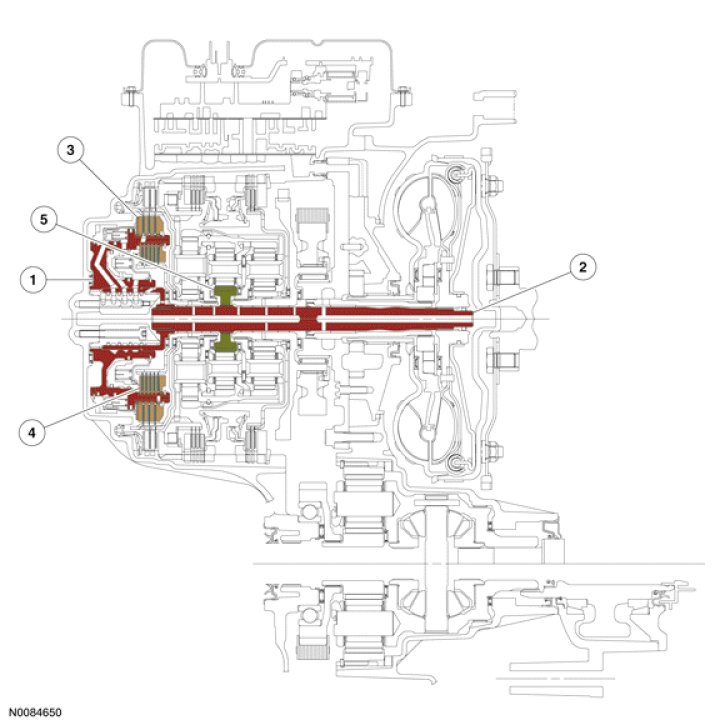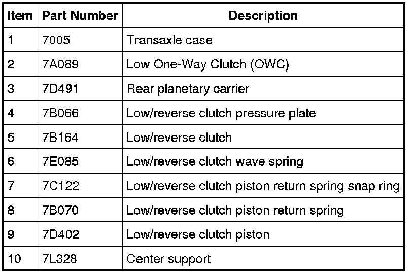 The low/reverse clutch is a brake clutch that holds the low OWC which is splined to the rear planetary carrier. The low/reverse clutch is applied in manual LOW, REVERSE and 1st gear up to 6 km/h (4 mph).