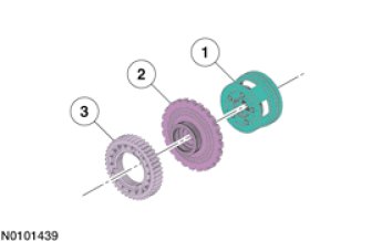The center planetary ring gear is splined to the rear planetary carrier and transfers power from the center planetary gearset to the rear planetary gearset in 3rd gear, from the rear planetary gearset to the center planetary gearset in 4th gear and is held stationary by the low One-Way Clutch (OWC) and low/reverse clutch in 1st gear and reverse.