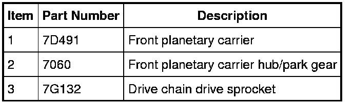 The front planetary carrier is splined to the rear planetary ring gear and transfers power from the rear planetary gearset to the front planetary gearset in 2nd, 3rd, 5th and 6th gears and reverse. The front planetary carrier is splined to the drive chain drive sprocket. The front planetary carrier is the output component for the planetary gearset.