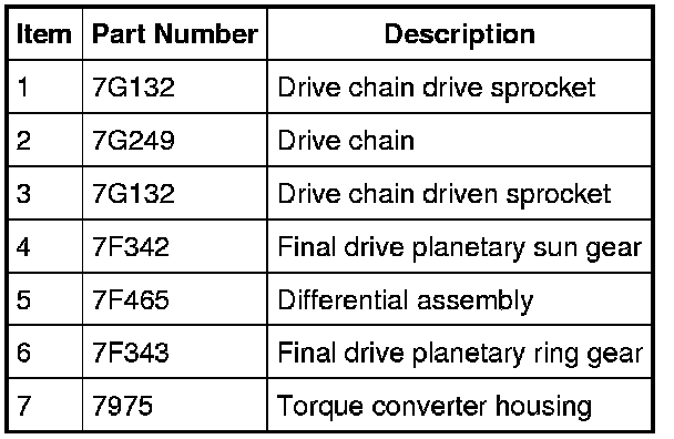 The final drive consists of a drive chain and sprockets and a planetary gearset and differential assembly. The drive chain and sprockets transfer torque from the front planetary carrier hub to the differential assembly that has a planetary gearset integrated into it for final drive torque multiplication.