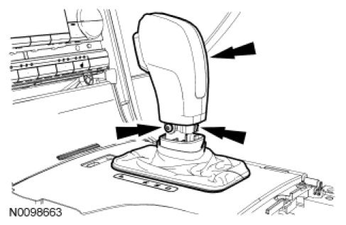 2. Slide the selector lever knob lower bezel down to expose the 2 selector lever knob screws.