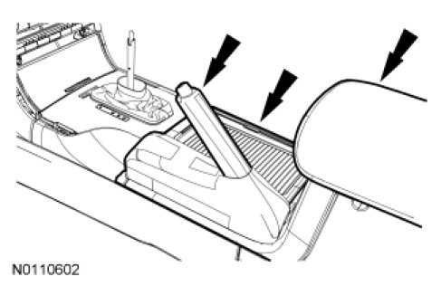 4. Lift the arm rest, apply the emergency brake, pull directly up on the selector lever bezel and remove it from the center console.