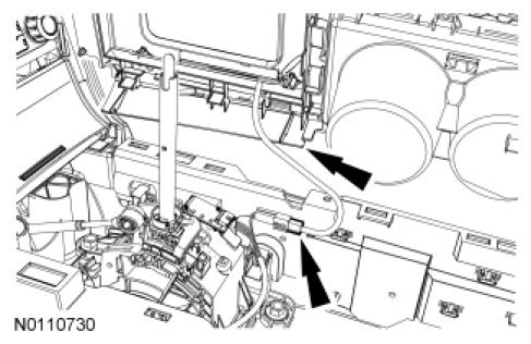 5. Disconnect the selector lever bezel electrical connector and remove the selector lever bezel.