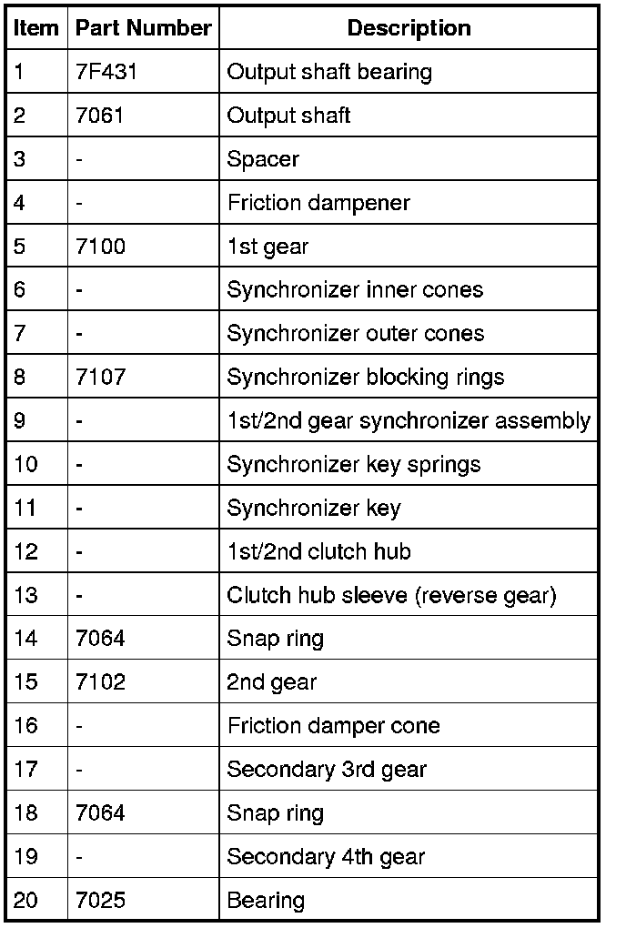 - Shift fork and hub sleeve clearance is 0.10-0.95 mm (0.003-0.037 in).