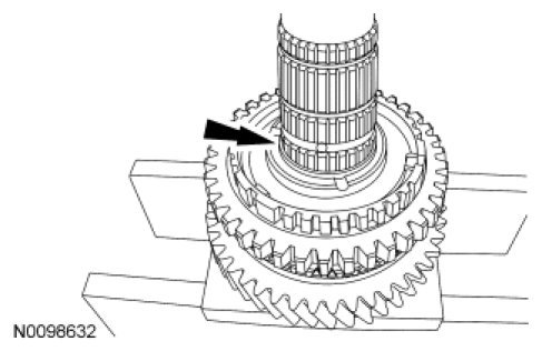 - Inspect for worn or damaged splines, synchronizer insert groove or end surface.