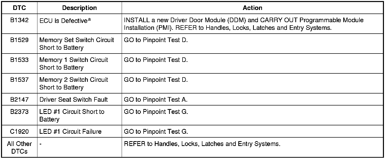 Driver Door Module (DDM) DTC Chart