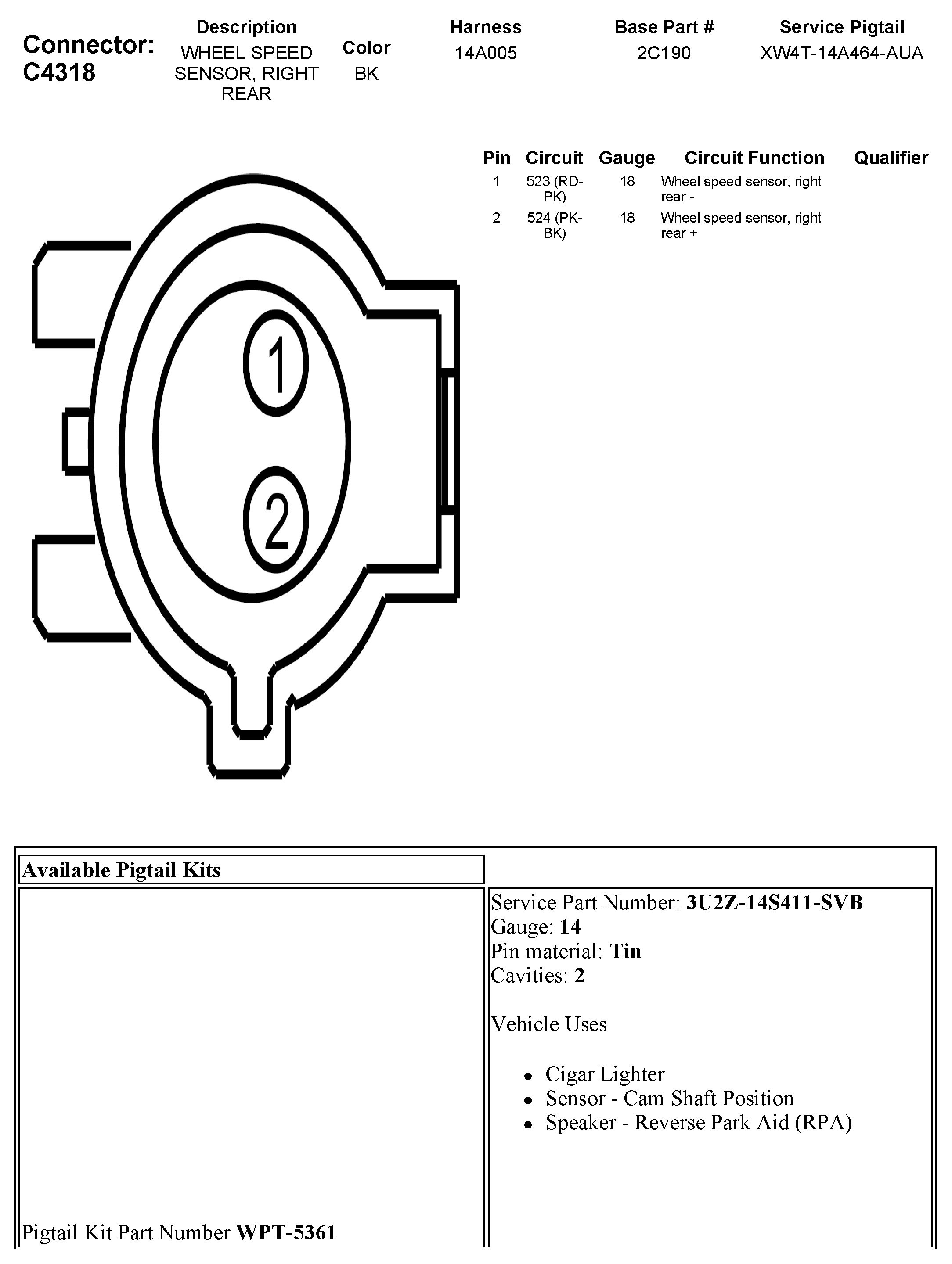 C4318 Wheel Speed Sensor, Right Rear