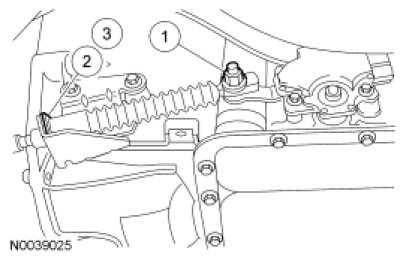 3. NOTE: When installing the selector lever cable, make sure that the selector lever cable locking tabs are locked in place and the selector lever cable end is snapped onto the ball stud. Press the selector lever cable into the bracket and listen for the selector lever cable to click in place. Pull back on the selector lever cable to make sure that it is locked into the bracket. Also make sure that the selector lever cable end is correctly installed onto the ball stud. Pull back on the selector lever cable end to make sure that the selector lever cable end is correctly installed.