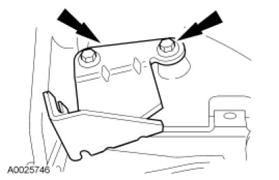 3. Unclip the selector lever cable from the selector lever cable routing assist bracket that attaches to the frame and routes the selector lever cable upward toward the top of the engine compartment.