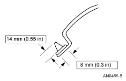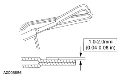 Using an appropriate tool, trim the urethane adhesive leaving a 1-2 mm (0.04-0.08 in) base of the original equipment urethane adhesive on the pinch weld.