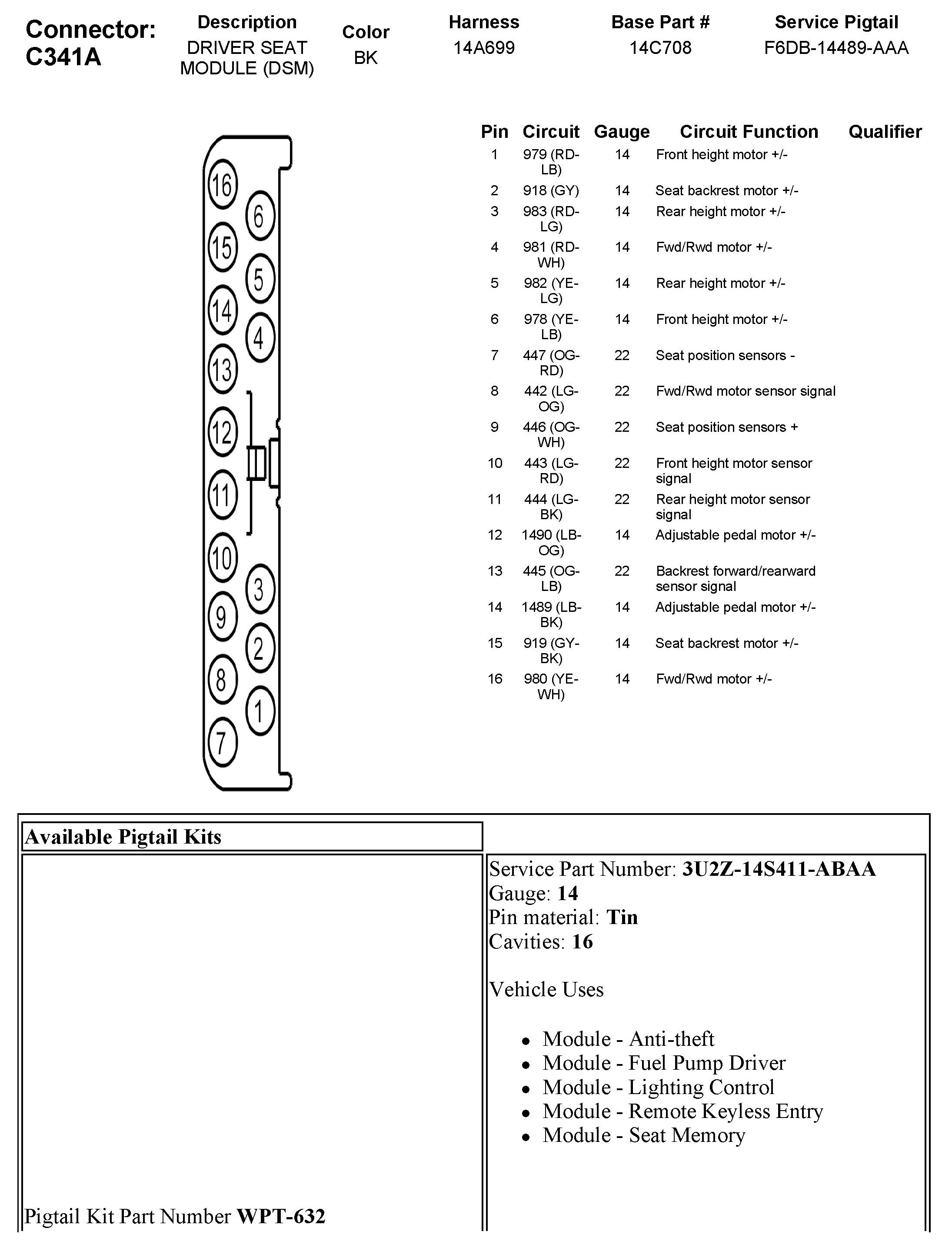 C341A Driver Seat Module (DSM)