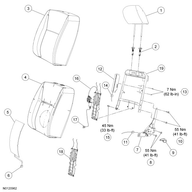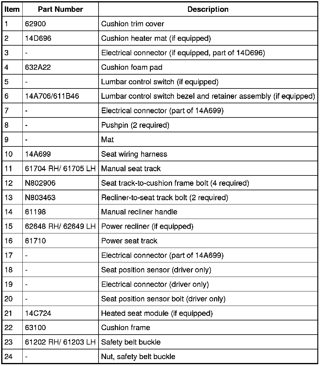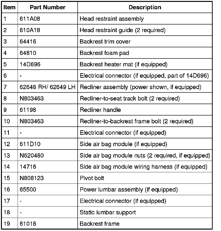 NOTE: Driver seat shown, passenger similar.